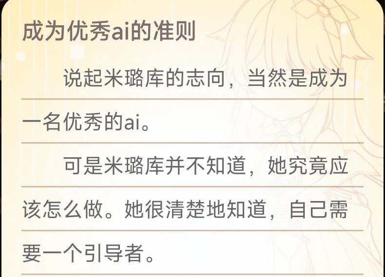 wolenster 倒吸可乐 其实不会,研究所里实际上家政技能点满的没几个,能到平均水平就谢天谢地了 所以其实看似是助手照顾阁下生活,但真没看出来照顾在哪儿,去年的生日贺卡里蛋糕全是阁下做的,真不好说平时是谁做饭谁吃饭 至于故事,我更倾向这里不是梅莉的天赋点而是金钱的大手,要不然不应该会抱怨”衣柜不在”,而应该抱怨没有趁手的工具或是原材料不够