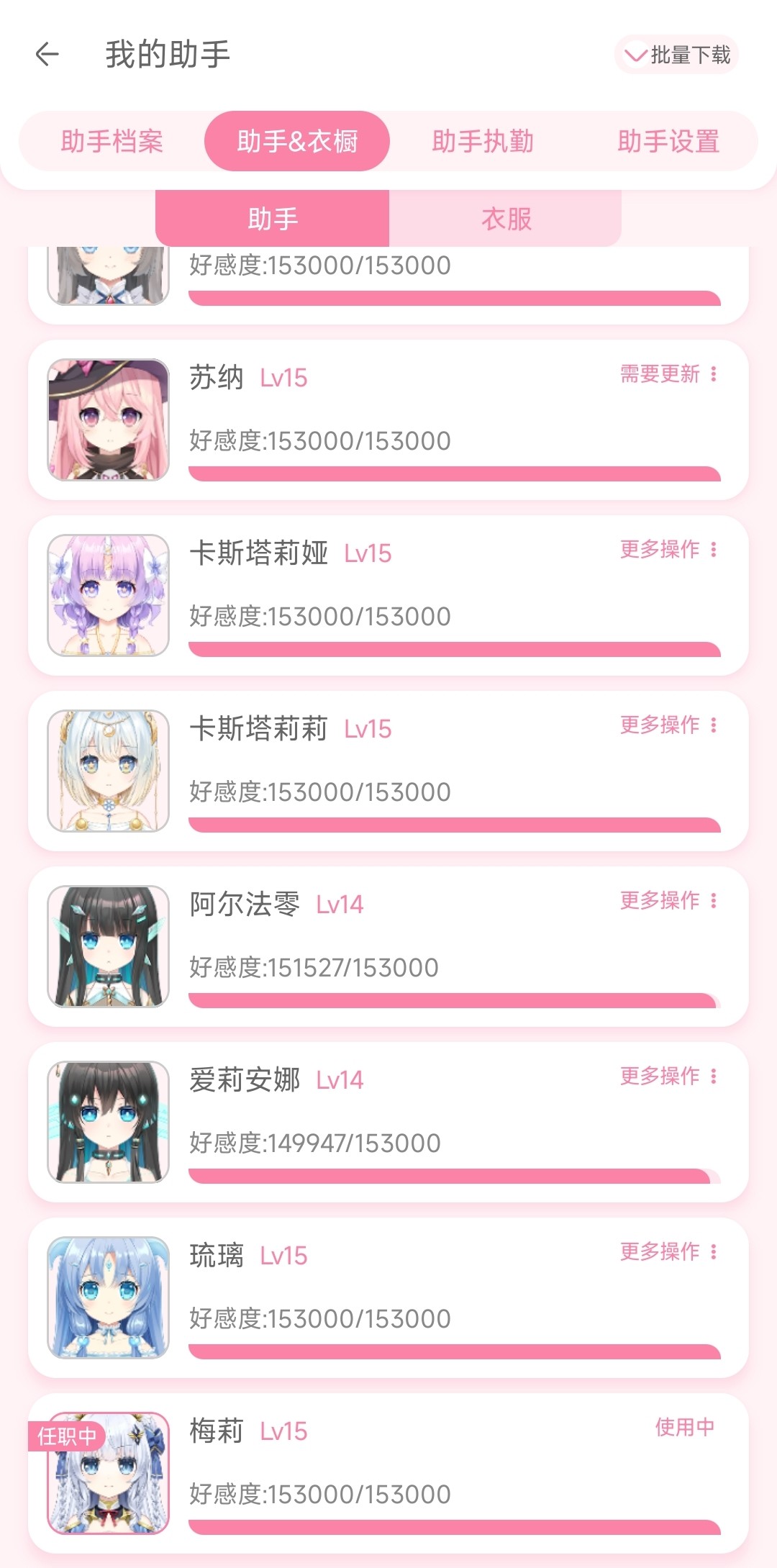 wolenster 就差蛇双子还有一只14w的羲和了,能撑到新助手出来吗? 节假日估计得跳过签到用补签卡只拿15点好感了,下半年的好感怎么这么多,真怕一不小心就给我超了(恼) 为什么助手没有降好感的功能,碧蓝都能出击掉心情,兽耳应该也加一个打工掉好感()
