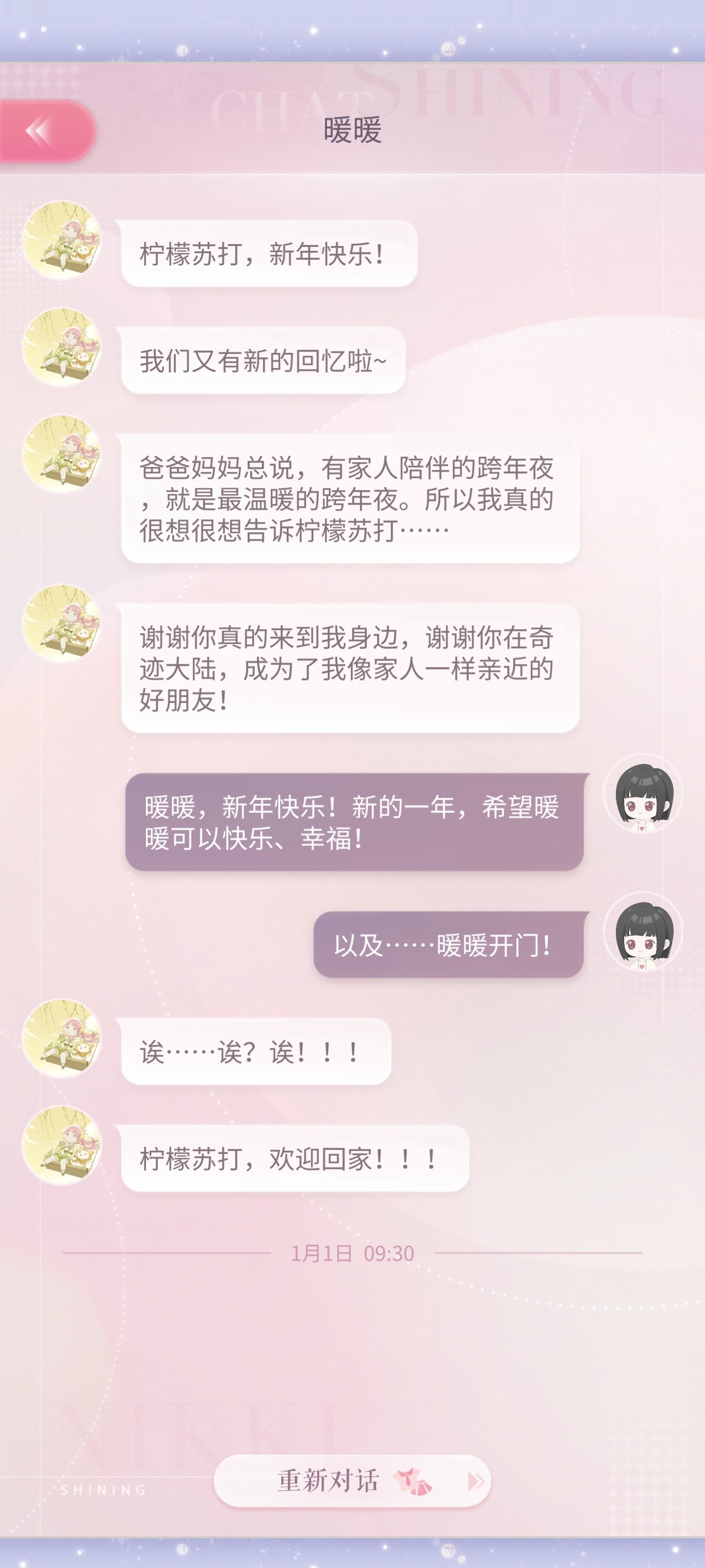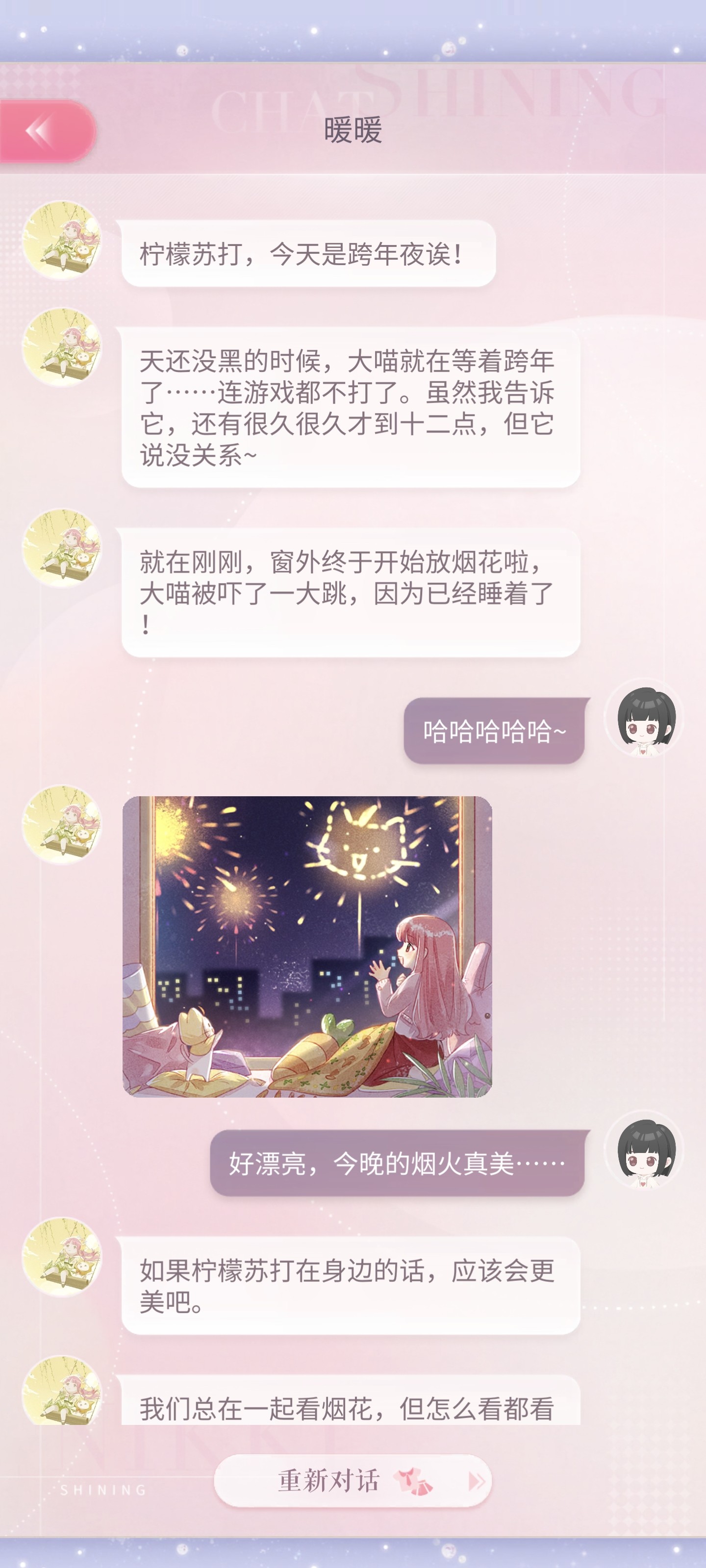 跨年的时候暖暖会准点发消息祝贺!